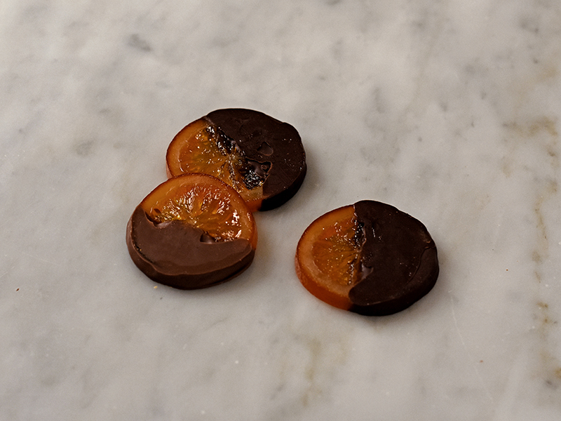 オレンジの輪切りをこだわりのスィートチョコレートでコーティング。
