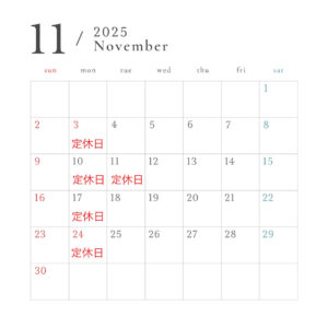 定休日以外にもお休みする場合がございます。HP等でお知らせいたします。