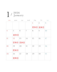 定休日以外にもお休みする場合がございます。HP等でお知らせいたします。