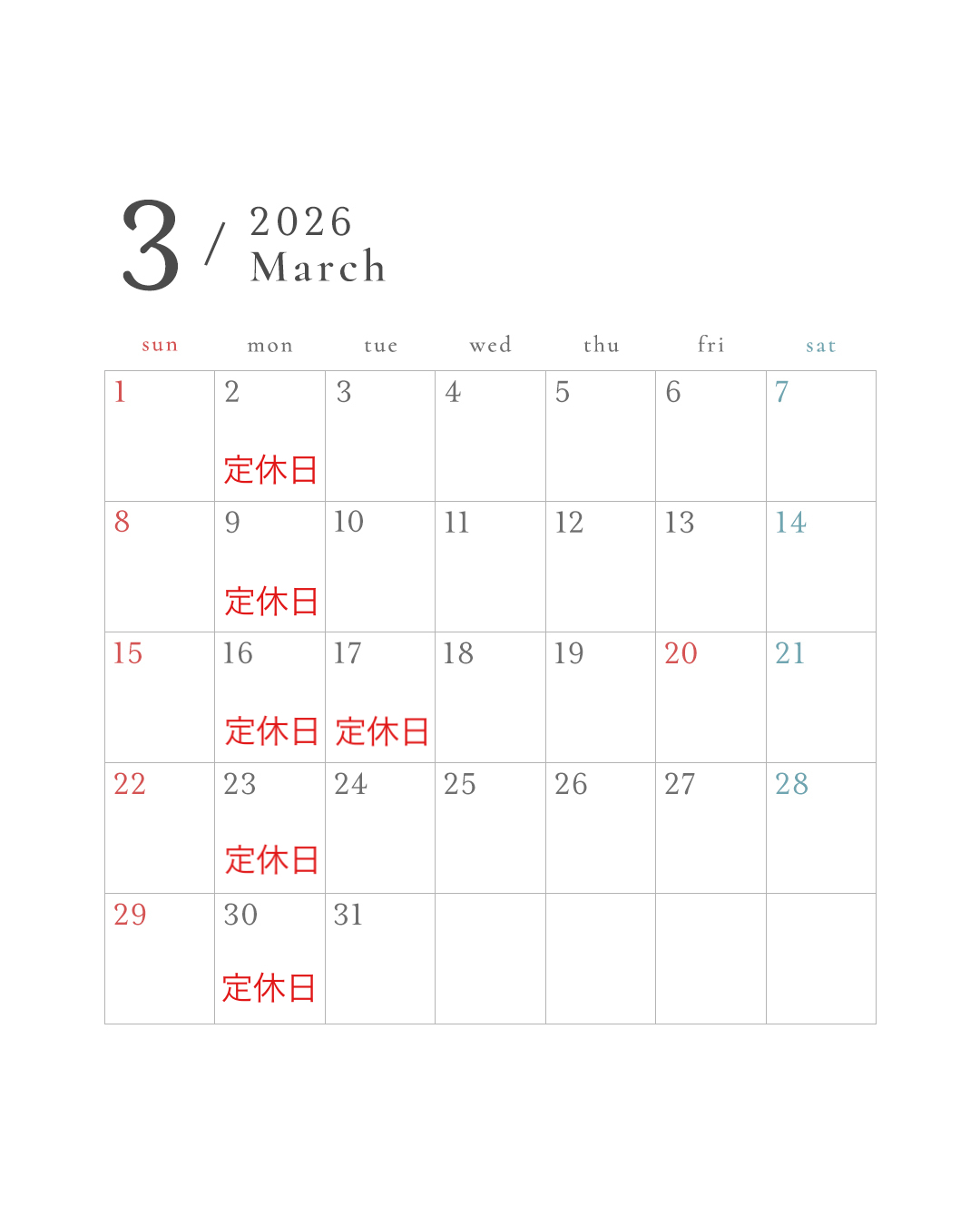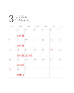 3月の定休日のお知らせです。