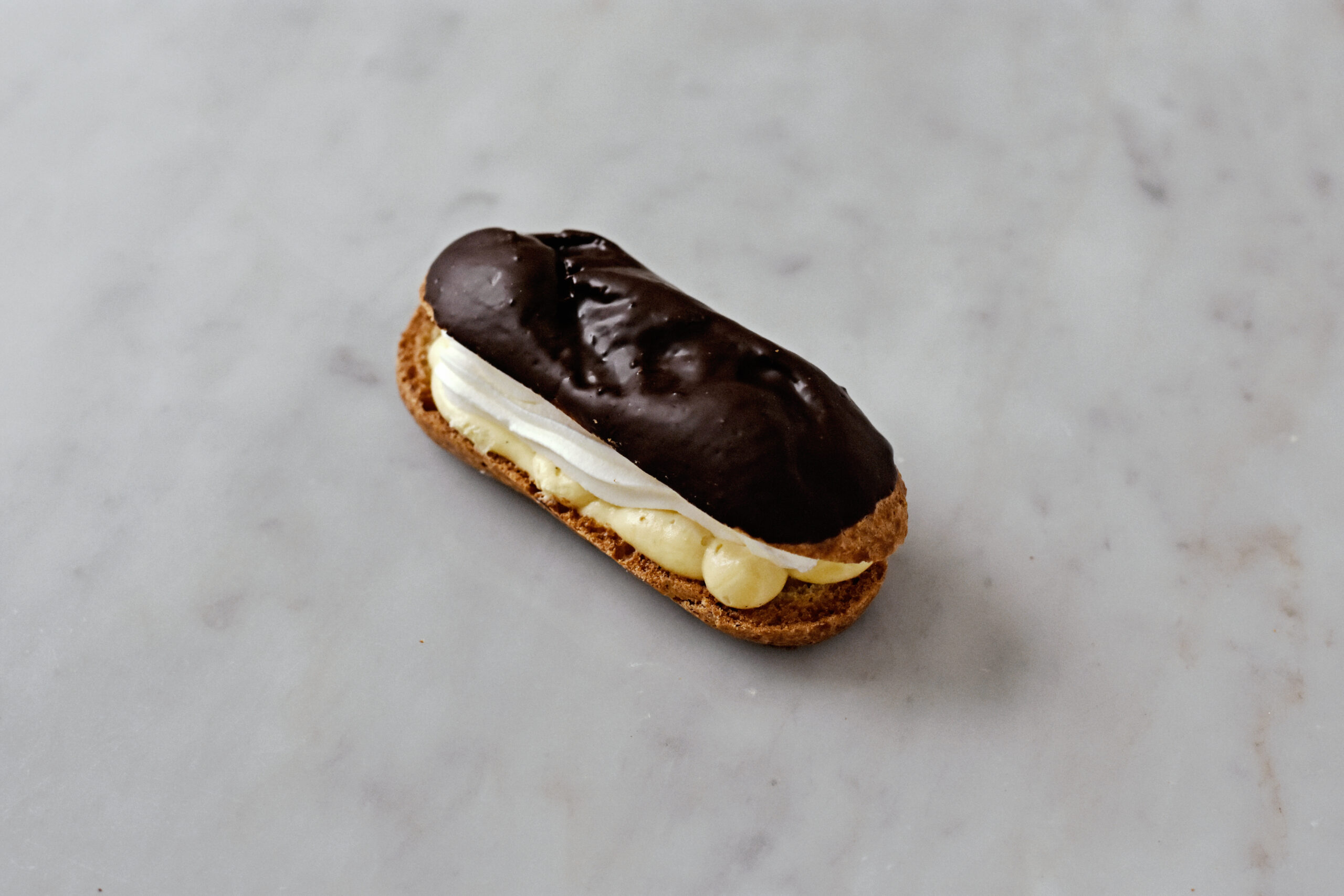 中は奥久慈卵をたっぷり使用したカスタードクリームと厳選されたフレッシュクリーム、表面をチョコレートでコーティング。