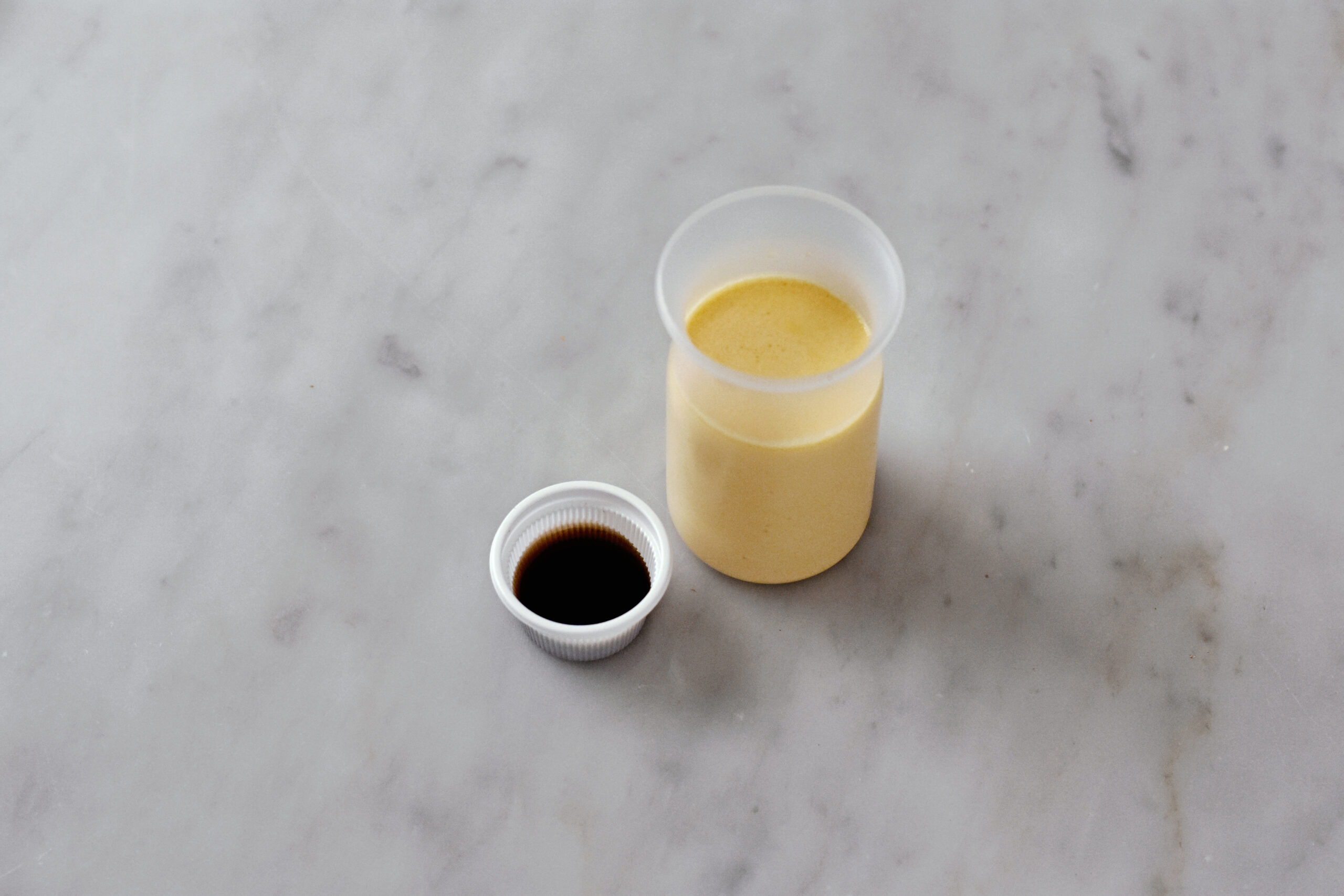 奥久慈卵と茨城県産牛乳を使用したまろやかなバニラ風味、お好みでキャラメルソースをおかけ下さい。