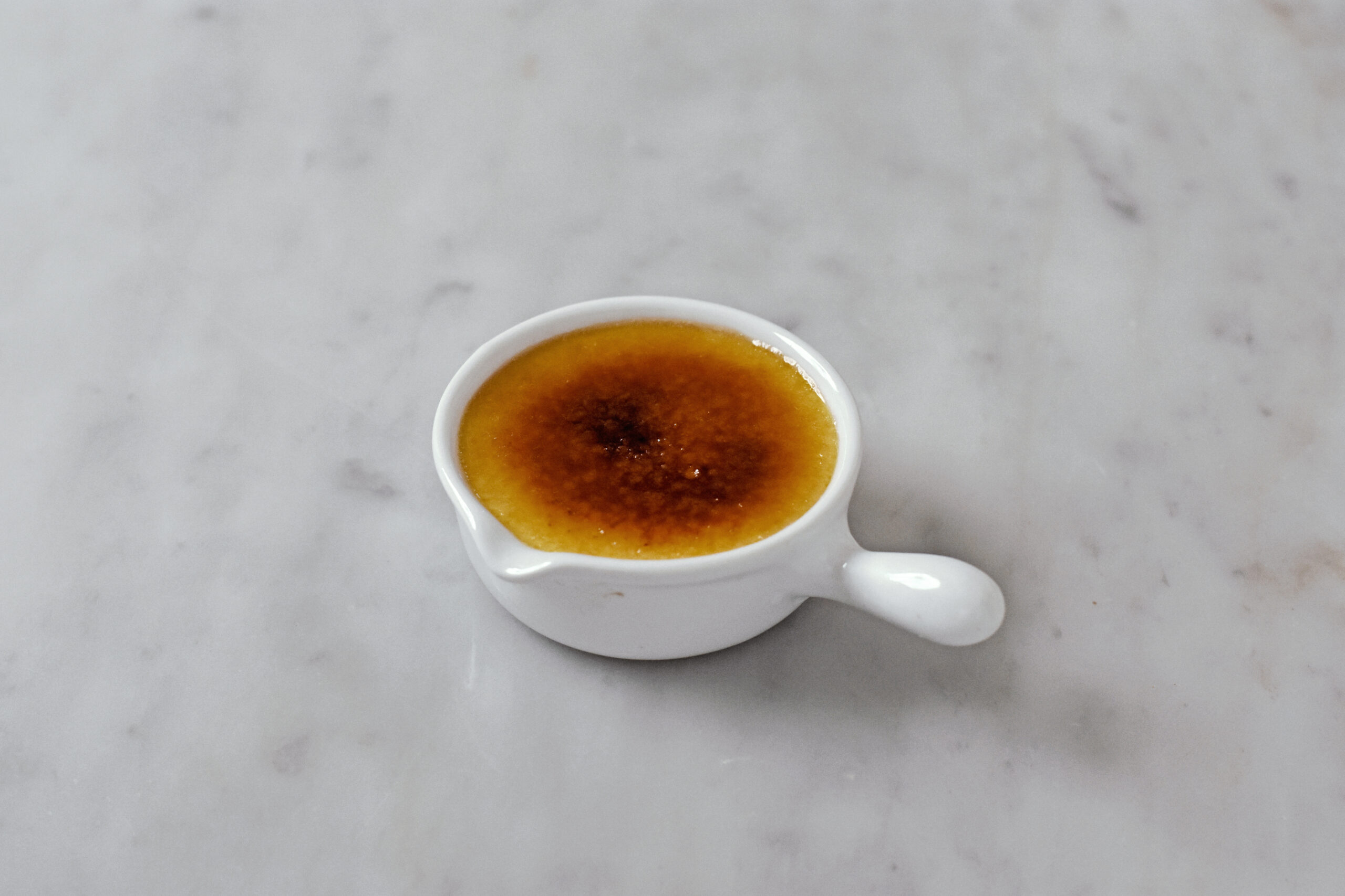 硬さの異なるプリンを二層にして、表面はパリッとキャラメル色に焼き上げました、3つの食感をお楽しみ下さい。