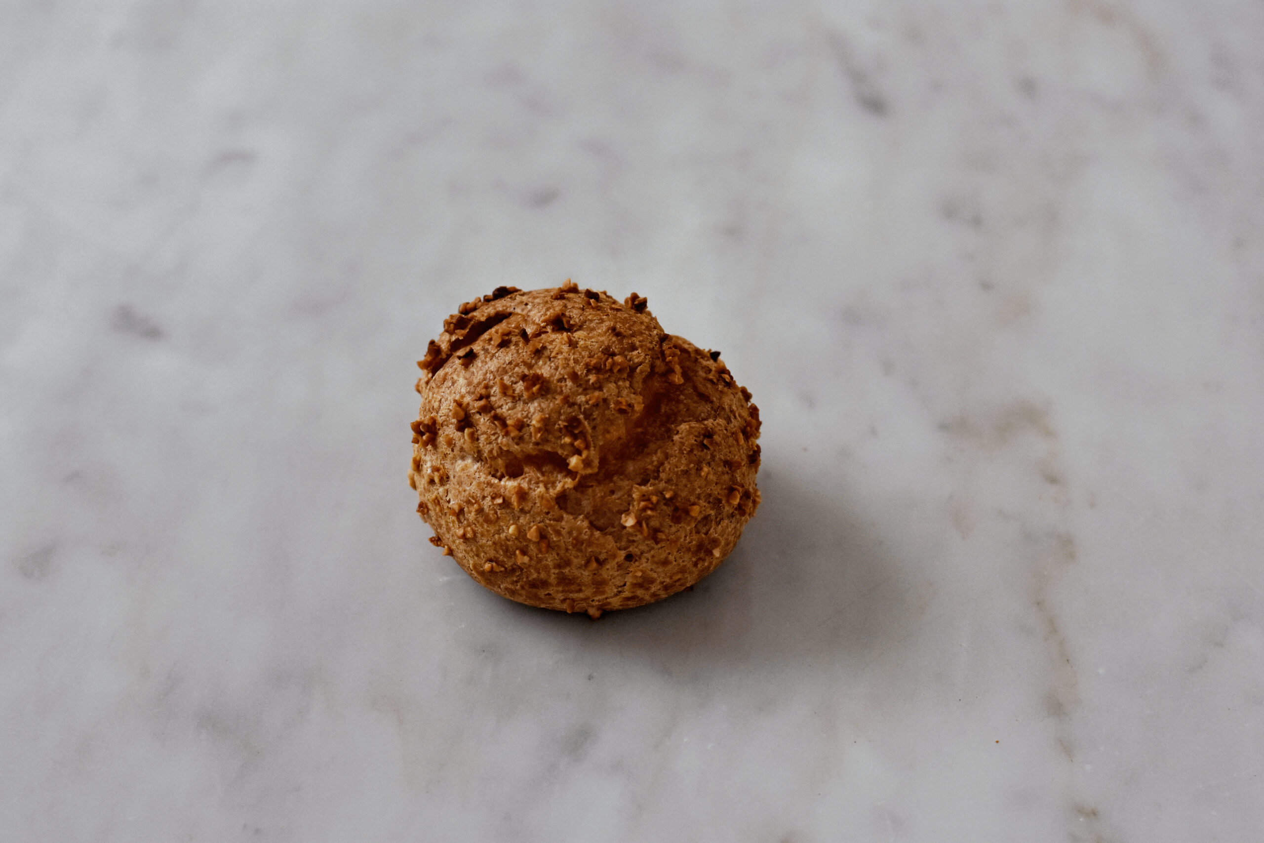 表面にアーモンドの粒、中には奥久慈卵をたっぷり使用した特製カスタードクリームがたっぷり入ってます。