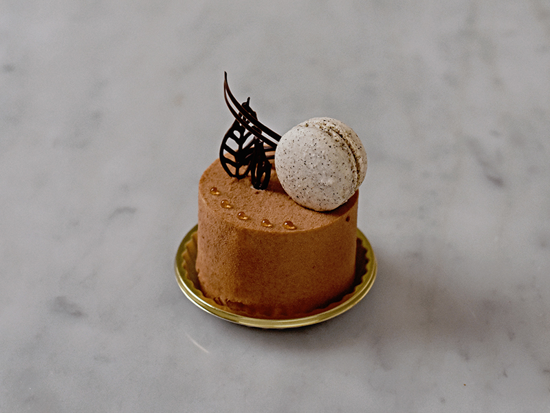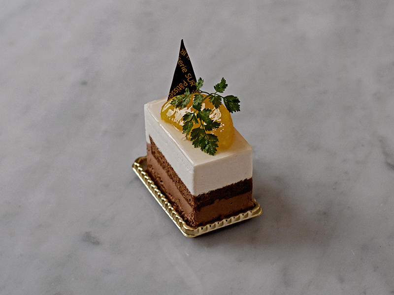茨城県産の紅茶を使ってミルクティーのような優しいムースと紅茶だけのすっきりしたムースにほのかな酸味と甘味をパッションフルーツとマンゴーを合わせたムースで表現しました。